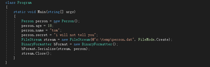 将 SerializableAttribute 特性应用于某个类型,以表示此类型的实例可以被序列化,如果对没有 SerializableAttribute 特性的类型进行序列化,则会引发异常。