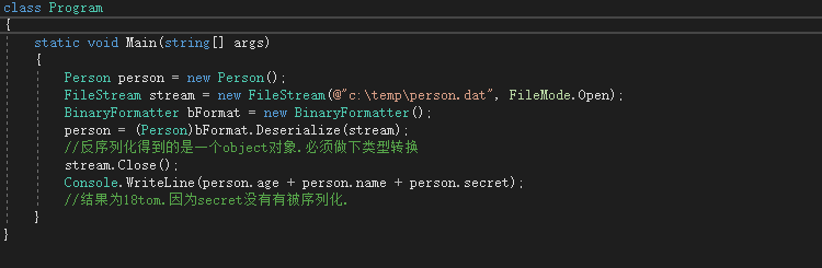 如果想让类中的某个字段不可序列化,可以使用 NonSerializedAttribute 特性。